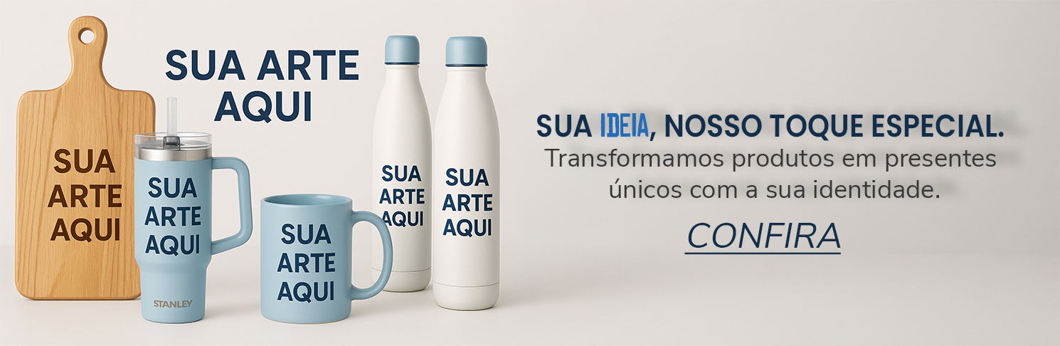 Nós acreditamos que presentear ou se presentear com algo único é uma forma de eternizar momentos, sentimentos e conexões. Seja para surpreender alguém especial ou dar aquele toque exclusivo ao seu dia a dia, você está no lugar certo. Personalizamos com carinho, dedicação e muito bom gosto!